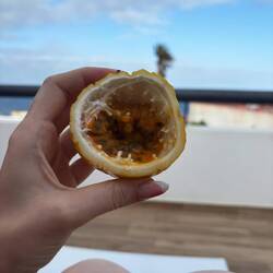 Heute stärkten wir uns mit einem leckeren Frühstück 🍳 auf der sonnigen Terrasse für unseren bevorstehenden Trip in die Hauptstadt Las Palmas.