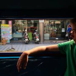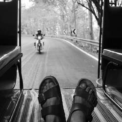 Efter en kort togtur fra lufthavnen træder vi ud i hjertet af Bangkok. Luften er tyk af varme og eksotiske dufte, og byen summer af liv i en kakofoni af dyttende scootere, svedige gadesælgere og latter fra forbipasserende. Vi falder straks i snak med togchaufføren, en venlig sjæl med en glimt i øjet og en uendelig liste af gode råd. Han peger os i retning af en Tuk Tuk og sender os afsted mod et rejsekontor. Mon han blot er en venlig sjæl, eller har han en fætter hvis bureau han hjælper? Inden vi når at forhøre os om hans familieforhold kaster vi os frygtløst ud i vores første - men også med hektiske køreture på en Tuk Tuk —en blanding af rutsjebane, dødsforagt og en test af vores evne til at holde fast uden sikkerhedsbælte.