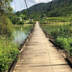 Efter lorte-eventyret begyndte den rigtige trekkingtur. Sammen med vores nye venner – to hollændere og en tysker ved navn Lisa (som senere valgte at tage med os videre til Pai) – begyndte vi opstigningen mod bjergene. Det var varmt, fugtigt, og hver skridt blev en kamp mod trætte ben og glatte stier. Men vi blev belønnet. På toppen ventede en udsigt, der gjorde alle anstrengelserne værd – en panoramaudsigt over det frodige, bølgende landskab, badet i eftermiddagens gyldne lys.