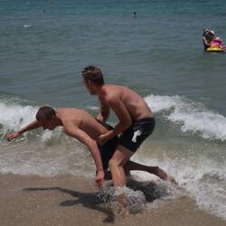 ✔ Surfe ved stranden (hvor Emil viste os, hvordan man gjorde det).