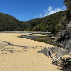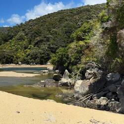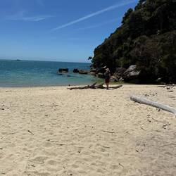 Ein weiteres Wassertaxi bringt uns zum Observation Beach. Die Bucht erhielt ihren Namen von dem französischen Seefahrer, Entdecker und Polarforscher Jules-Sébastien-César Dumont d’Urville, der in der Tasman Bay mit seinen Schiffen kreuzte und einen Großteil der Inseln und Buchten kartografierte und benannte. Nach ihm selbst ist eine Insel im Marlborough Sound benannt. Die Observation Beach erhielt ihren Namen, weil hier ein Observatorium eingerichtet wurde um den Venustransit über die Sonne zu beobachten.