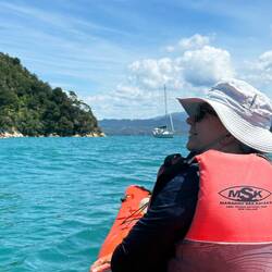 Wir steigen in Kajaks um paddeln zur gegenüberliegenden Adele Island, benannt nach Dumont d’Urville’s Ehefrau und anschließend zurück nach Mārahau.Read more