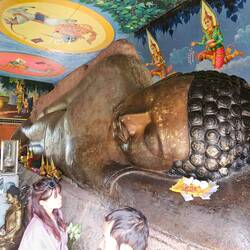 Nun noch der Bayon Tempel mit den schönen Budhas im Mauerwerk und der auf einem "Berg" liegende Phnom Bakheng.