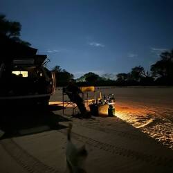 Sunset kurz genossen und dann grad noch so im letzten Licht Zelt aufgebaut … schon super schnell für 2. Tag 🤩. Dusche, Cup of Noodles, Vino unter fast vollem Mond und ab in die Heier.