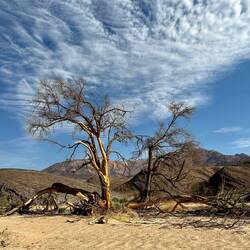 Die Oase und hübsche „White Lady“ Lodge am prachtvollen Brandberg mit Campingplatz war ein ruhiger „Hafen“ nach allem. Hinter unserem rechten Vorderreifen hörten wir lautes Klackern. Scheisse. Zwei hilfreiche Männer gefragt, die konnten es nicht orten und sagten gleich wir sollten gleich morgen früh zum Reifenshop in Uis fahren. Dazu haben sie noch einen Schaden gefunden den irgendjemand als Quickfix mit Kabelbinder klar gemacht hat. Puuuhhh. 🙈