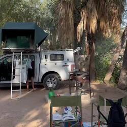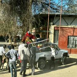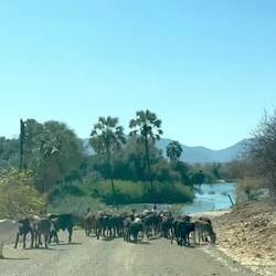 7:30 Vorbereitung für unsere Tour nach Ruacana. Heute nehmen wir Pawo mit. Ein Minenarbeiter dessen Frau in unserer Lodge arbeitet. A little friendly Lift to the other side.