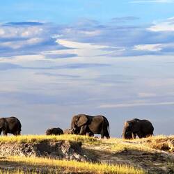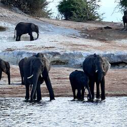 Doch dann kamen wir zu einer anderen Herde, an der wir ruhig super nah waren 😍. Tanja und ich haben lange auf dem Dach des Bootes verweilen und tollste Aufnahmen machen können. Es war wunderschön 🤩. Essen und Camp war uns egal nach dem langen Schippertag mit kaum was zu Sehen.