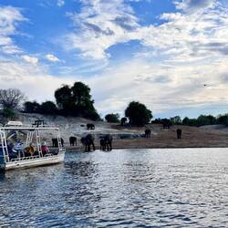 Kaum auf dem Chobe River änderte sich das Bild und die Landschaft. Wir schipperten zum Elefant 🐘 Bay, und prompt war da auch eine grosse Herde … vor allem grosse Herde Touristen in Booten, die die Säugetiere verscheuchten, weil sie viel zu nah dran waren. Mist!!!!