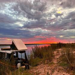 Der Sonnenuntergang war der Kracher 🧨 und die Wolken versprachen wieder Regen 🌧️. In unserem Camp waren schon die Neuankömmlinge vom anderen Boot und wir haben uns sofort super verstanden mit Andrea und Raymond. Beide hatten auch schon viele afrikanische Länder bereist und fotografiert. Mit deren Ausrüstung haben die Beiden Traumbilder geschossen. Absolut irre!!
