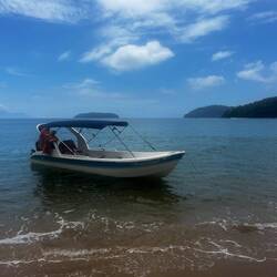 Am nächsten Tag wollten wir zu DEM Strand schlechthin auf der Ilha Grande. Über eine einfache zweistündige Wanderung durch den Regenwald kommt man dort hin. Oder man zahlt eben 15€ pro Person für ein Taxiboot mit Hin,-& Rückfahrt 🙅🏽♂️ also liefen wir los bei Sonnenschein, 35 Grad und geschätzten 98% Luftfeuchtigkeit 🥵