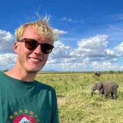 Due to the size of the National Park at Maasai, we ended up completing a full day game drive included as part of our tour. We mostly set out to find the Leopard because we knew it would be the most difficult to find. The day was massive, the sun was hot, and the roads were rough. Nevertheless, the day was incredible, and some of the things we saw were proper wildlife experiences. It started with some standard animal finds before eventually we hit a road block. We had organised to pick up other members of the group across a river track, but as we arrived, there were 3 very hot, full, and sleepy Lions that decided to park up across the track. They had just consumed a zebra moments beforehand, and the carcass and its smell was there to confirm it. We were shocked that they could be in such a location. As a result, the rangers were OK with us getting really close because they were in the river bed, and so we didn't have to maintain a 25m distance. Generally, these are the rules, but if no one is around, then the rangers won't catch you getting closer. We then headed towards a reporting of a big male lion that was guarding a buffalo carcass just further upstream from where these Lions were. When we got there, the smell was overwhelming, but the sight of a lion standing over a rotting and half consumed buffalo was amazing. Jackels and vulture swarmed ariund the big male, but his presence alone stopped everything from getting to close. This guy was massive. We couldn't get as close as there were many people around, but he was big enough to ensure I didn't really want to. It was amazing to see this type of nature face to face. We then wandered off to find a few herds of elephants and giraffes, but we were not yet done with the big cats. Somehow, our guide spotted a lion near a tree down the valley, and when we approached, I got to experience the most unbelievable feeling. As one HUGE male lion lay in the long grass, another lioness lie within the shadow of the tree, but our guide managed to park our truck right in between. This meant that there were two massive Lions within 2m of both sides of us. An enourmas and easy meal for both if they decided they were hungry. An incredible feeling being so close to two enourmas beasts that were happy just looking at us and going back to sleep. Looking into their golden eyes also was something i did not expect to be so overwhelming and daunting, as you try and consider what goes on in their brain when they look directly at you. A view that would mean certain death for most animals was something we could sit and admire somehow. An unbelievable morning of big cats, mostly chilling but also slightly active with their eating.