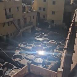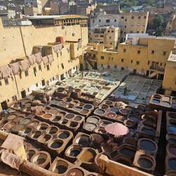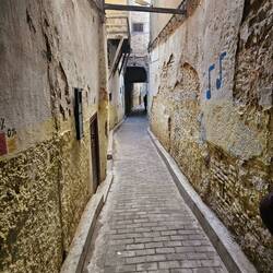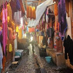 After this, we made our way to the narrow streets of the Fes Medina, and I do mean narrow. Often, no more than one person could fit down an alley way at a time. This was done to protect the city from invasion forces, protect the residence from the brutal Moroccan sun's heat, and to maximise space. The city walls allowed little room for expansion, so as people married and the population grew, people began having to build up. Often, families would build in the only places where there was space, right over the top of the narrow walkways. This is done to ensure that the newlyweds could be close to their family. This creates these dark and narrow walkways that have made the Medina famous. Despite this, safety is not an issue for tourists. To this day, the aesthetics and layout of the ancient Medina have been maintained to hold onto the heritage. Building in the city is only allowed under very unique circumstances, generally maintenance. A lot of the city is undergoing restorations to maintain the ancient dynamic, to ensure structural integrity, and to restore the city to its previous condition. In 5 to 10 years, the experience the city will provide will be unbelievably immersive and unique. It is not like other old towns that have many streets of old styled houses. This is a whole city that hasn't changed in centuries. There is no reconstruction judt restoration. It is exactly how the city once was.