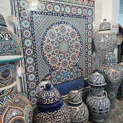 We had one extended tour of Fes today that would take us to a pottery, a weavery, a tannery, the royal palace, the oldest university in the world, and a wood museum. We did, however, start at a lookout over the old Medina that we would spend the next 8 hours exploring. It was an old fortress that used to occupy the city limits, and it provided a great view of the city. It was hard to believe the size of the Medina given how old it is. It must have truly been a sight to behold when an ancient merchant approached the huge gates overlooking the metropolis that was Fes. Once we had taken some photos, we began our journey into the centre.