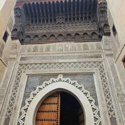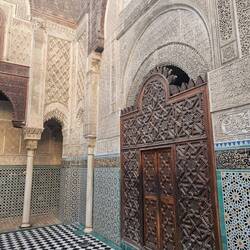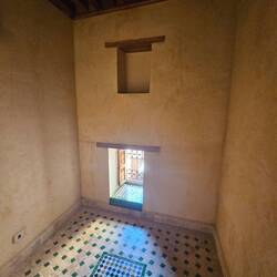 The next was the oldest university in the world. This was a mind-blowing fact given the ancient universities around the UK and the Middle East. The University of al-Qarawiyyin (Kairaouine) still stands today as a functional university. This did mean, however, access was not allowed. Its status as the oldest university is somewhat disputed as it was originally a school for teaching the Quran. It was created by a woman named Fatima al-Fihri in 858 AD and was funded by an inheritance she received. She then used the money to open the mosque and the school for teaching monks. It is said to be a large contribution to the Islamic golden age. Because access wasn't allowed, getting a good photo was difficult. It was a very popular tourist attraction. But based on what I saw and on the photos online, the condition looks immaculate and incredibly beautiful. We then explored some of the student accommdoations for while they studied. Students would remain here for 12 years while at university. A stunning fact when you saw the conditions in which they lived. Although the main university courtyard was beautiful, the rooms were not far off of prisons. In the community, though, the students would be treated well due to the expectations that they would one day be key members in the town and mosques. Nonetheless, I will attach pictures of the rooms. Some barely 2m x 2m, and they would live here for 12 years. This was an incredible experience, and it was hard to believe the condition of the university. The typical arabic scripts that occupy the walls were still legible (if I could read arabic), and it all dates back to the 9th century.