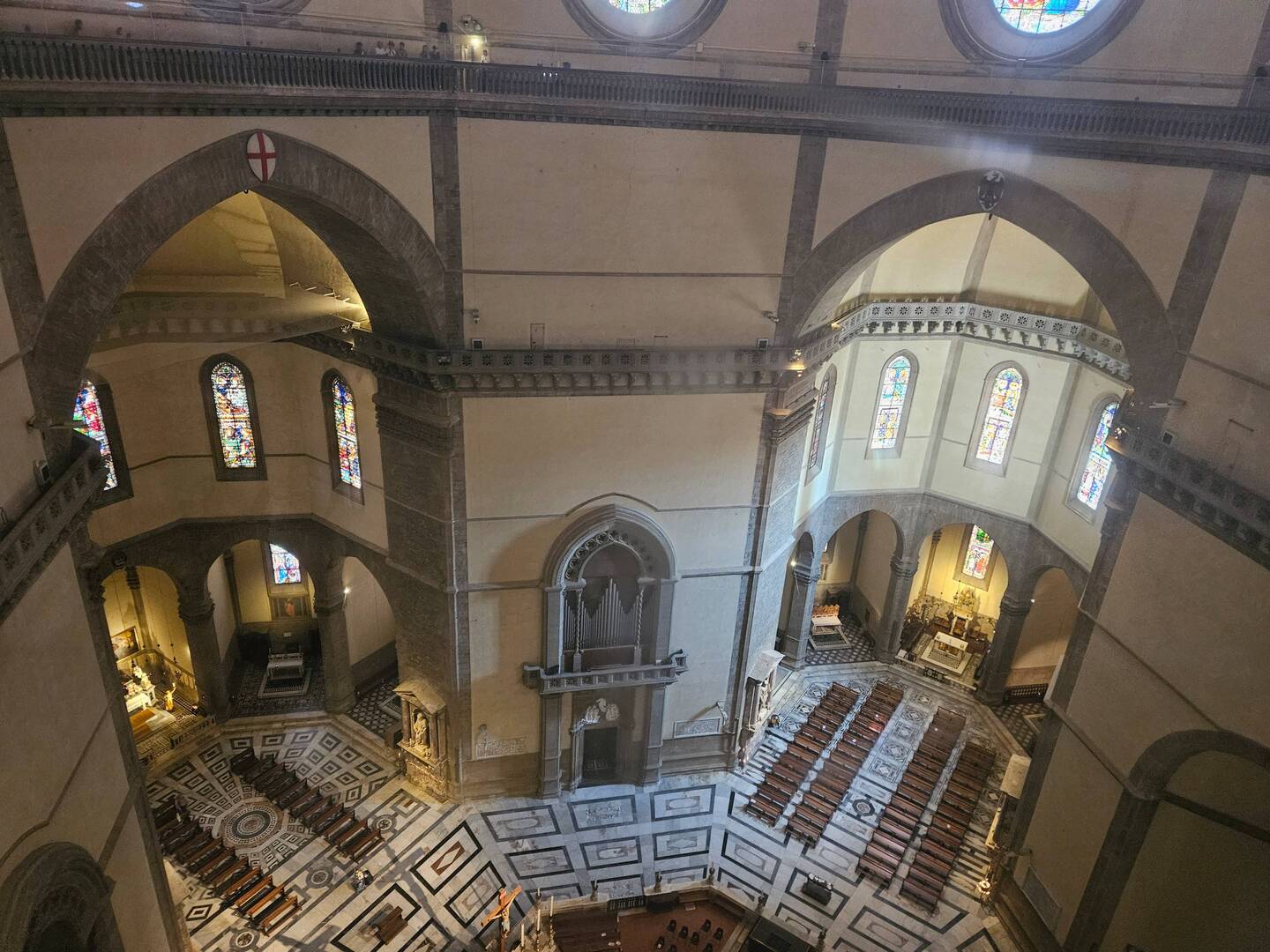 As part of the Brunelleschi's dome, we got to see the full Cathedral of Santa Maria del Fiore. This was interesting but not as impressive as some of the others that I had seen. This was surprising given it’s the biggest cathedral in Florence and one of the most spectacular buildings from the exterior, but I think the main attraction is the dome. Nonetheless, it was cool to see the ceiling from inside the cathedral, then see it up close on your way to the top of the dome. They did not lie about the confined space in which they expected you to walk through. For someone of my size, I hit my head multiple times trying to watch my step. The view was well and truly worth it, though. It was amazing to see the city of Florence from that high up. You could pinpoint key locations around the city, see the countryside and hills overlooking everything. I could not have been ready for the incredible views. You simply must see the pictures to get any sort of valid description of the views. Florence is truly a beautiful city. Its global significance dwarfs its actual physical size and, as such, makes moments like this even more special. You aren't just overlooking replicas of the same building, but you are overlooking thousands of years of architecture, artistic design, compact living, cultural spaces, beautiful nature, and impressive feats of engineering. Because there are no skyscrapers or large office buildings, it feels like you are thousands of years in the past. A view like this in Brisbane would likely not even be worth the steps. But in a place like Florence, I would have done 5x that to witness the view (even as viscous hungover as I was). It hasn't been long into the trip, but Florence has taken the cake as the city to beat in terms of beauty, culture, art, and uniqueness. It's truly incredible.