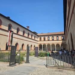 While most of my new mates went to Lake Como for the day, I decided to stay around Milan, where I could save some money and actually explore the city I am staying in. I think I am going to have to come back to redo the north of Italy, and likely the south of France, when i have more money. Unfortunately, I have had to skip Lake Como and Chinque Terre despite being two huge travel bucket list items for this trip. I am short on time to get to Portugal by the 22nd of Septmeber, and even more short on money. So I would rather see Milan and come back and do Como when I have money to support my trip. All this aside, Milan was quite nice, the architecture was amazing and the monuments were quite interesting. I started my day by looking at Basilica di Sant'Ambrogio, which wasn't that exciting given you couldn't see much from the outside, and I didn't want to pay to go in so it was disappointing. Next door was the university, and to be honest, that was more exciting than the Basilica. It had a really nice garden area and some interesting architecture. But given I couldn't go into any of the buildings, it didn't take long until I was moving on. Next was the Santa Maria delle Grazie. This was much cooler and more beautiful, but unfortunately the inside was closed so I couldn't go in. But it was still cool to see from the outside. I then headed towards Sforzesco Castle, which was enourmas and very popular for tourists. As such, there were a lot of people trying to scam you, as you can hear in the video I attach. Unfortunately, I wasn't allowed my Lime Scooter into the area, and so it heavily impacted the time I spent in there. It was completely open and high 30 degrees in Milan and so it was incredibly difficult to do anything. As such, I missed the Parco Sempione that resides to the back of the castle. This is also quite exposed and so would have been way too hot to walk through. This did, however, mean that I missed the Arco della Pace that is situated on the far side of the park. This would have been cool to see, but there are plenty of arches in France, so I'm sure I won't regret it too much. After this, I jumped back on a lime scooter and headed toward the Piazza Cordusio, where there are plenty of stores and restaurants. It was cool, but my lime scooter wasn't allowed here either, so that was sad. This eventually led to the main attraction of Milan, the Duomo. This was really cool to see, but of course, I came on the day that the museum was closed, so without my knowing i paid 6 euros just to see the inside and nothing else. This was disappointing, but there was not much I could do. The inside also wasn't thay nice compared to other basilicas in Italy, but was still quite cool. It was also undergoing renovations, so that took away from the moment, too. I don't know why they do these during the summer, but oh well. It is something you have to do when in Milan, so I'm not too fussed. The Duomo Piazza also accommodates the Palazzo Reale di Milano, the Galleria Vittorio Emanuele II, and the Teatro alla Scala. These were also quite cool to walk around and see. The location of the hostel was incredibly central, and it was great for seeing everything.