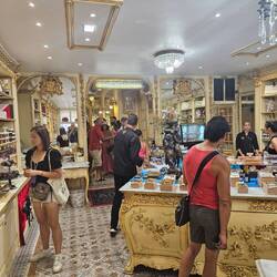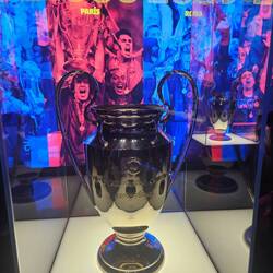 Unfortunately, as soon as I arrived at the stadium, disappointment hit. Without me knowing, the stadium was undergoing massive renovations, and so there was no access to the actual football pitch. As such, I arrived and participated in a virtual tour of Barcelona's history and trophies. It was cool but I wouldn't have paid more than 10 euros for it instead of 26 euros. In total, it took me about 40 minutes to get through, but seeing all the champions league trophies and Ballon d'or trophies that Messi had achieved at the club was really cool. But the rest of the time, they were basically trying to fill in time to make people feel like they weren't ripped off. I did see on the ticket that you got a view of the stadium, but this was even worse than the tour. You're probably only a few stories up, looking up at the former entry of the stadium that is basically rubble, and you're looking through a safety mesh that means you can barely see anything at all. It wasn't even worth the photo. After that, they tried to get you to spend more money in the store, but I was far too disappointed to give them any more of my money.