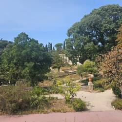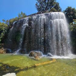 I followed her suggestion and headed up the hill to see the castle and learn a bit more about the history. It was cool to be able to see the old Promenade from atop the castle. The castle was the original town of Nice, founded by the Greeks, who were victory over a neighbouring colony. Thus, the city was named after the Greek goddess of victory Νίκαια (Nike gets its name from the same place) or Nice. But it has history going back 400,000 years, with evidence of the earliest uses of fire going back 230,000 years ago. The extensive cave systems that exist in the area made it perfect for early humans. The views from atop the castle did not disappoint either. It had historical photos of paintings that overlook the same area, and you can see how it has changed over hundreds of years. It was really cool. Not only this, but it had a really nice park area where the castle once stood, so it is still very functional despite many of the ruins of the actual castle being gone. There are some, but it is minor - it is mostly just the castle walls that remain. It even had its own little water fall.