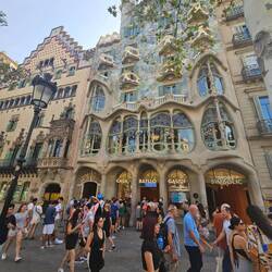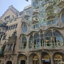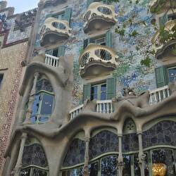 After the audio tour was complete and my mind was blown, I had to make my way back to the hostel, gather my belongings, and head to the train station. But, I hadn't yet had my Gaudi fix somehow, and so on the way home, I stopped by two more iconic buildings of Gaudi. These are far less significant, and I just took a few quick photos on my way through. Given how many other things I did today, I doubt I will be able to include them in the 20 photos, but we will see. I included the photos for Camp Nou, Casa Mila, and Casa Batllo in yesterdays log to ensure i could post just a decent fraction of the photos taken. These were quite cool, balconies with the faces of cats, wavy buildings, colourful murals, and more strange but fascinating design ideas. They were truly unique.