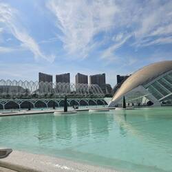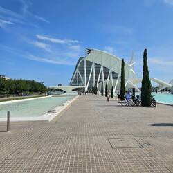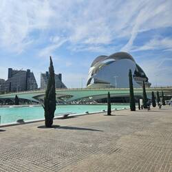After a sleep in and a call to the family regarding the sale of my car, it was time to celebrate the good news. She had FINALLY sold. As such, I headed to find some Paella. Valencia is the alleged birthplace of the dish, and so I had to hunt down somewhere authentic. I had been given a list of places during my walking tour that is supposed to be the best, but most of these places were expensive or required two people for the dish. This is a similar problem with the tappas that I really want to try. It's difficult to get a good share when you're on your own. But I found a restaurant where there were a bunch of people wearing headsets and speaking English. This likely meant that a walking tour sent their group to this restaurant for paella, meaning it must be pretty decent. Even better, they sold individual dishes. Although slightly expensive, it was my best option, and it was amazing. It's the only time I've eaten it, but it was great, I thoroughly enjoyed it. I got the standard, original dish that comes with chicken, rabbit, beans, and rice. Didn't mind spending the 15 euros for how good it was and how substantial of a feed it turned out to be. This was enough fuel to get me through my long bike ride. Although the beach was to the East, I began by going West to try and find the connection from the old river to the new river. This was underwhelming as I rode as far as I could right to the spot it was supposed to deviate, but there was nothing but a highway, I think i would have had to find an alternate route over or under the highway, but I decided it probably wasn't worth it and headed back along the old river ride. Having ridden from East to West, I was shocked at how nice it was. I mentioned yesterday that there were playgrounds, football pitches, and rugby pitches, but that barely scraped the surface. There was running tracks, athletic fields, a small zoo, fountains, skate parks, many other sports fields, musical theatres, gardens, art gallery's, museums, restaurants, cafes, and even aquariums. I mean, given its 10km long, you can expect there to be a lot, but I was stunned. To the East, near the beach is where the main attractions of the city are placed. These are: Queen Sofia Palace of Arts (arts museum), Hemisfèric (movie theatre), Museu de les Ciències Príncipe Felipe (museum), CaixaForum València - Àgora (cultural centre), and the L'Oceanogràfic (aquarium). Construction of these finished in 2200 because they all looked like they were from the future. The shapes reminded me of space ships. They were completely white or completely glass, they were surrounded by a huge water Fountain, and they contained bridges that appeared to float. It was so cool to see. And you could ride your bike all the way through. I decided not to stop at any of the monuments because I had to get to the beach, and wasn't that fussed on spending more money. I also figured it would take quite a while, and I was running out of time in the day.