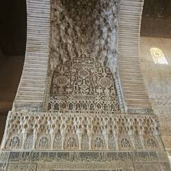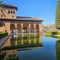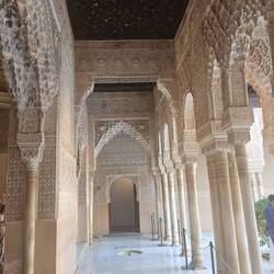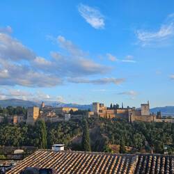 Although the gardens were great, the Alhambra was amazing. You could walk around for ages just exploring what was on offer. This was unfortunately not one of those times where the audio tour was free, and in fact, it was 6 euros, so I said fuck that and just walked around. But it was amazing nonetheless. I have so many photos from today that it was impossible to fit it into 20, but I will have to share the rest when I'm home. The views from the top were remarkable. The town looked so beautiful, but especially the Muslim suburbs that I had explored earlier in the day. The palaces were so unique and different it was hard to believe they were all situated within the one fortress. It even had a second garden, smaller but equally nice. Finally, though, 7pm hit, and I got to visit the Nasrid Palace, the main attraction of Alhambra, and I was blown away by the details of the building. People today would struggle to construct something so precise. The walls and archways through the doors cascaded with tiny depictions of smaller archways, maybe a few centimetres big. I can't really describe it. The corners that connect the walls to the ceiling weren't sharp. They were simply rounded but made up of tiny archways. It was so cool. This was a Muslim construction and, as such, was far different from the churches I had been visiting previously. There was no artwork on the walls. The walls were the artwork. Instead of painting people or things they made fascinating designs that extend the whole building - every inch of wall was a complicated and intricate series of alternating patterns that creates a building that feels like it's alive and moving as you walk through it. It is truly a unique spectacle. It almost looks rough and worn from afar and only when you get close do you realise that every little nook and dent is in fact a part of the design and had been put there intentionally, all intertwined and connected as a series of patterns. Even more beautifully still, they incorporate Muslim words and phrases into the walls, blending in with the patterns and shapes. How something like this could be so perfectly maintained is beyond my belief. Especially when you think about construction starting in 1238. Nearly a thousand years ago and it stands more clear and well constructed than most things built today. The Nasrid Palace was completed in the 1600s, but the whole site is in immaculate condition. It is mind-blowing and easily the most impressive part of the site. I have hundreds of photos I would love to share but won't be able to do, so I will make a post in the group chat whenever I can because 20 photos doesn't do it justice. 2000 photos wouldn't even do it justice.