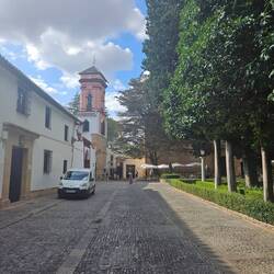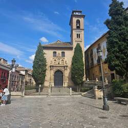 My first stop on my walk was the Monastery to Saint Jeronimo (Monasterio de San Jerónimo). This was cheap and very cool, coming with an audio tour that helps paint a picture as well as give background in the purpose and history of the building. Interesting facts like the tower that looks over the monastery was destroyed by Napolean Bonaparte during his conquests of europe in order to use the materials to build a bridge and bring his troops across. This was eventually rebuilt, and you may be able to see the different colours in the tower in the photos, but it's a cool fact nonetheless. It is a beautiful monastery with multiple levels that surround a patio of orange trees in the middle. Quite a strange design but awe inspiring regardless. I then went literally across the road, maybe 50m, to the Santuario de Ntra. Sra. del Perpetuo Socorro Granada. This was also quite cool but far less noteworthy. Finally, I put on an audioguide of the city and began to follow their route around the city. They explained that the suburbs of Albaicin and Sacromonte are the best to properly experience the Muslim influence over the city. The buildings are all white, with rocky streets, brown tiled rooves, gardens, and vine thickets growing all over the walls, with the flowers giving it a hint of colour to contrast the white and brown buildings. It was cool to experience a city within a city because it was so different from the rest of Granada. Not only this, but this suburb is where the best viewing platform is to see Alhambra, the main tourist attraction in Granada and maybe southern Spain. The Saint Nicholas viewpoint gives a perfect side profile of the Alhambra, perched utop the hill. And it looks incredible from there. Locals playing music and flamenco dancing makes this one of the most beautiful suburbs in Spain. At least that I have seen.