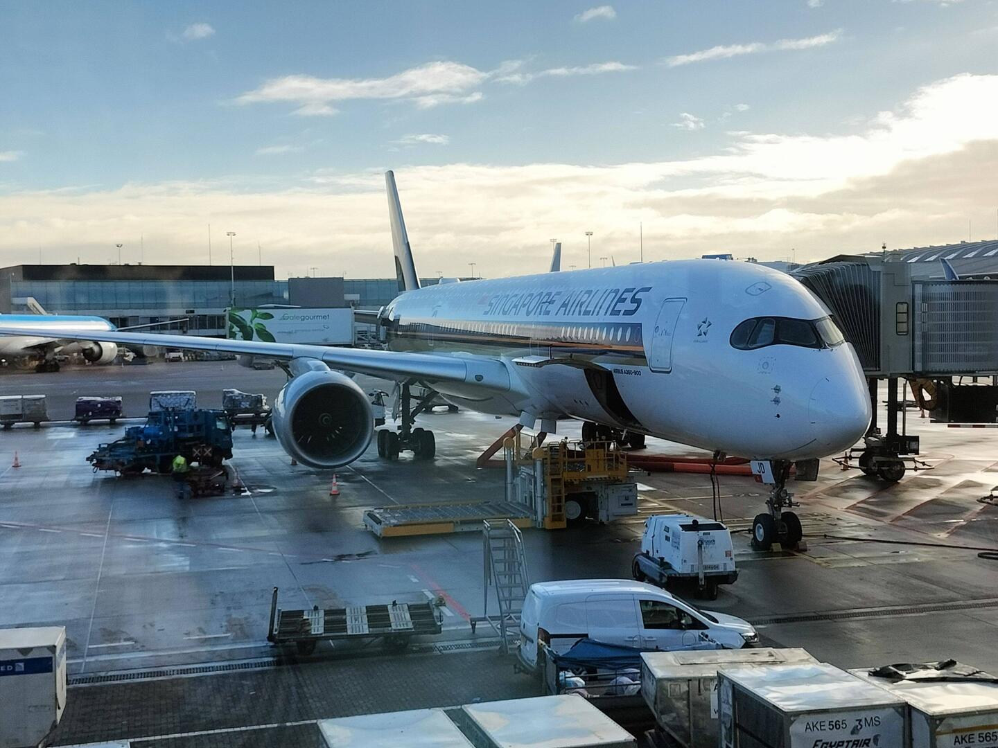 Bij het boarden een uur moeten wachten, problemen met de rolstoellift schijnbaar.