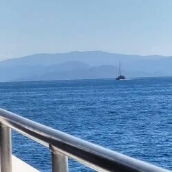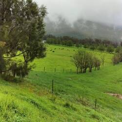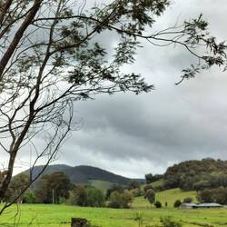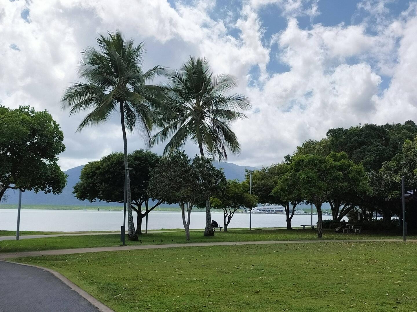Vanmorgen, voor het eerst sinds ik uit Cairns weg ben, buiten ontbeten. Zonnig met af en toe een wolkje of een koud windje.