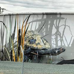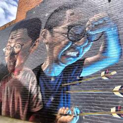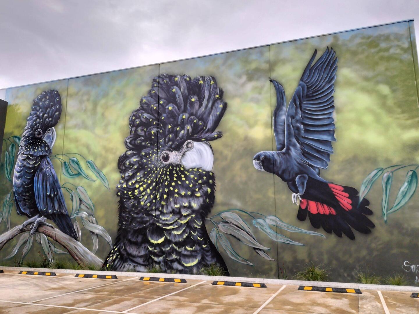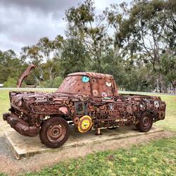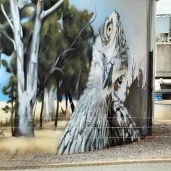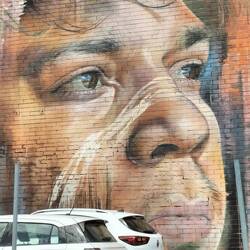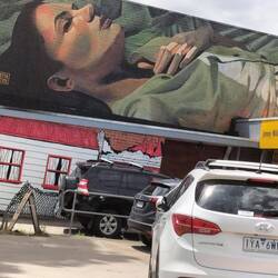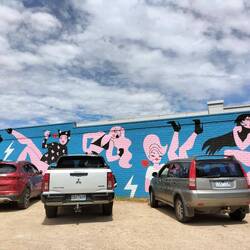 Onderweg in Benalla wat gedronken en Street-Art bewonderd. Deze keer echt op muren. Jammer van al de geparkeerde auto's.