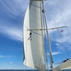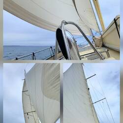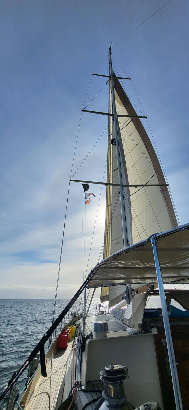 Man blinzelt uns zu 😉 Erstmals alle Segel ohne Reff gesetzt. Champagnersegeln 🥂 - gut gekühlt ist es!
