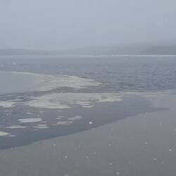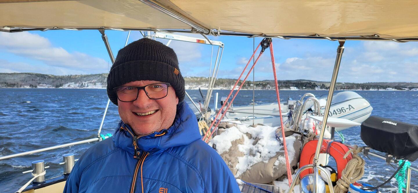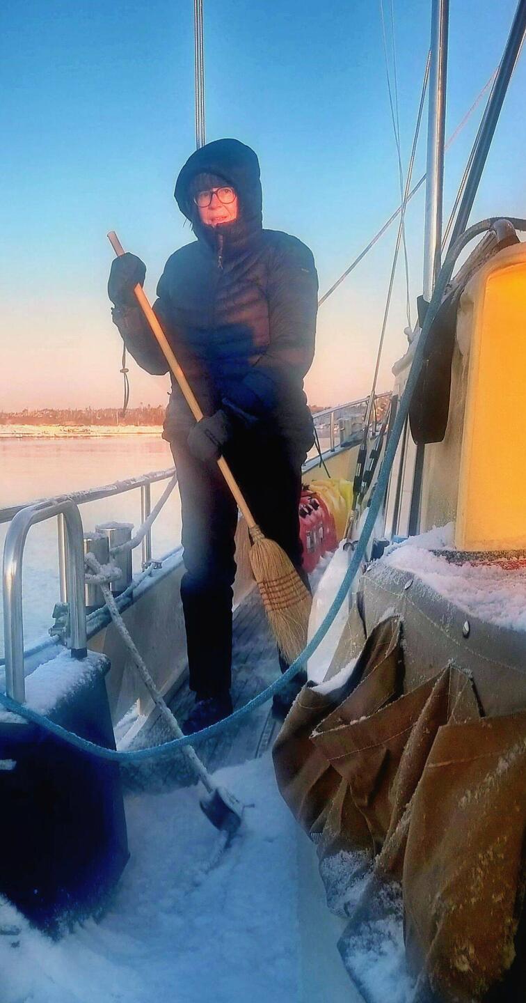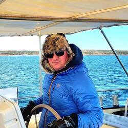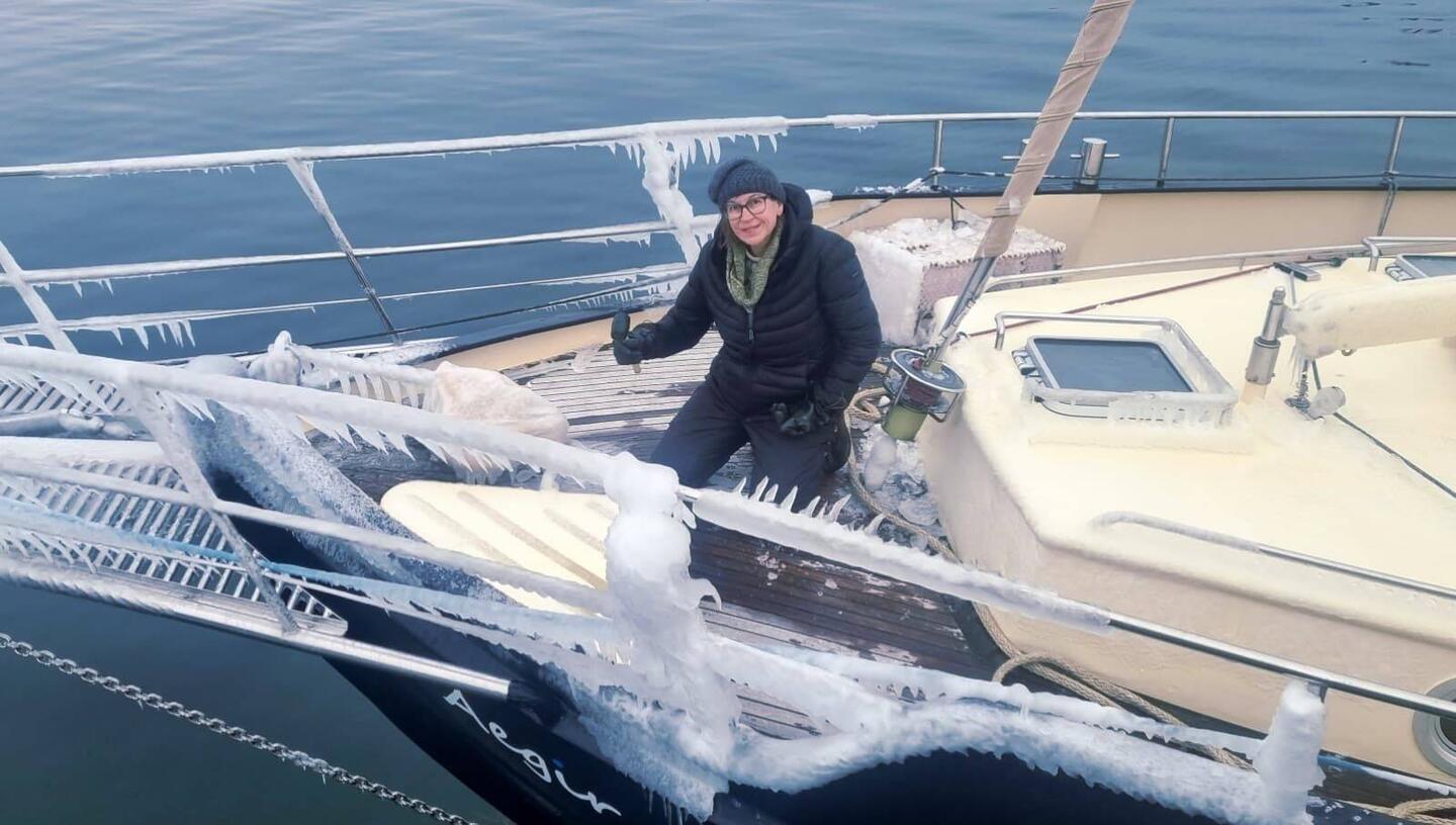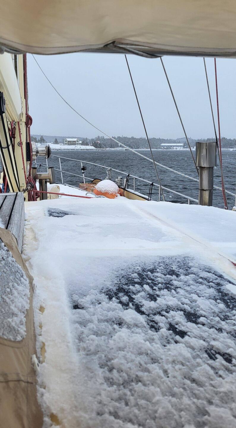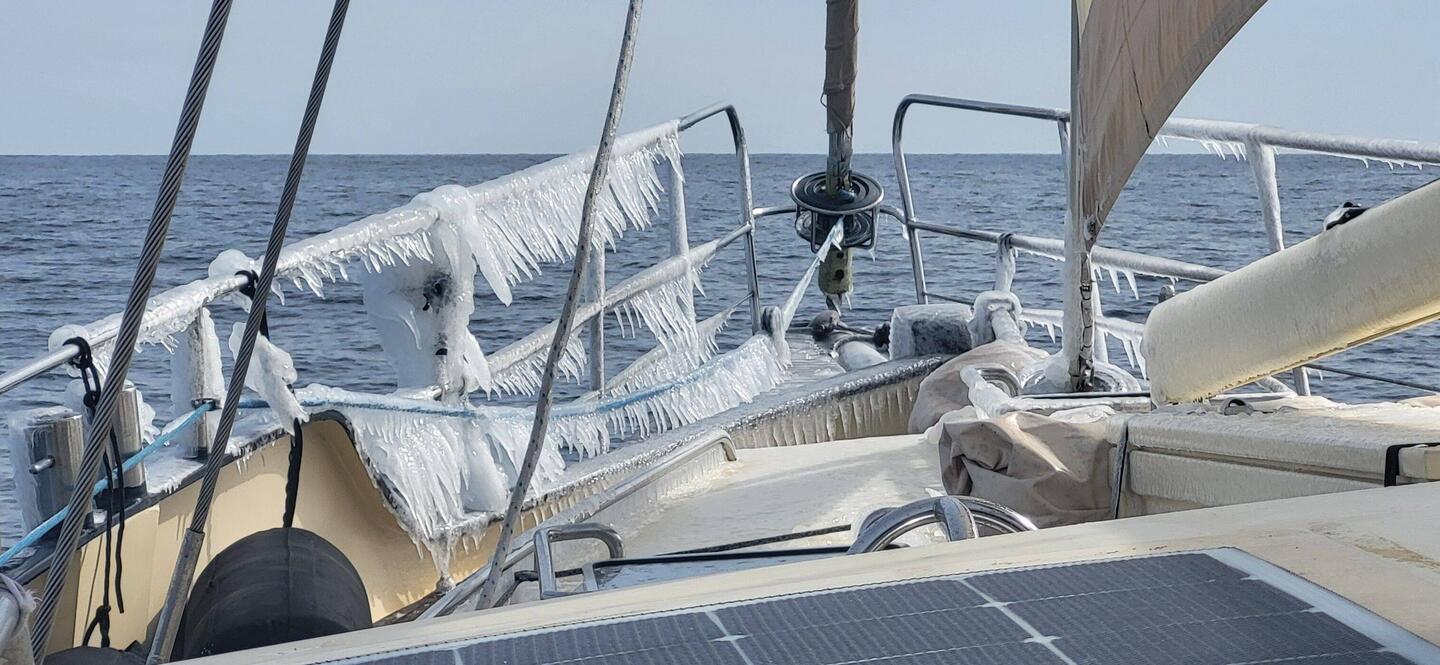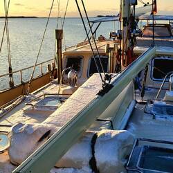 Guter Segeltag: Schneefall, immerhin ordentlich Wind von hinten, üble Wellen und dann wieder Sonnenschein.