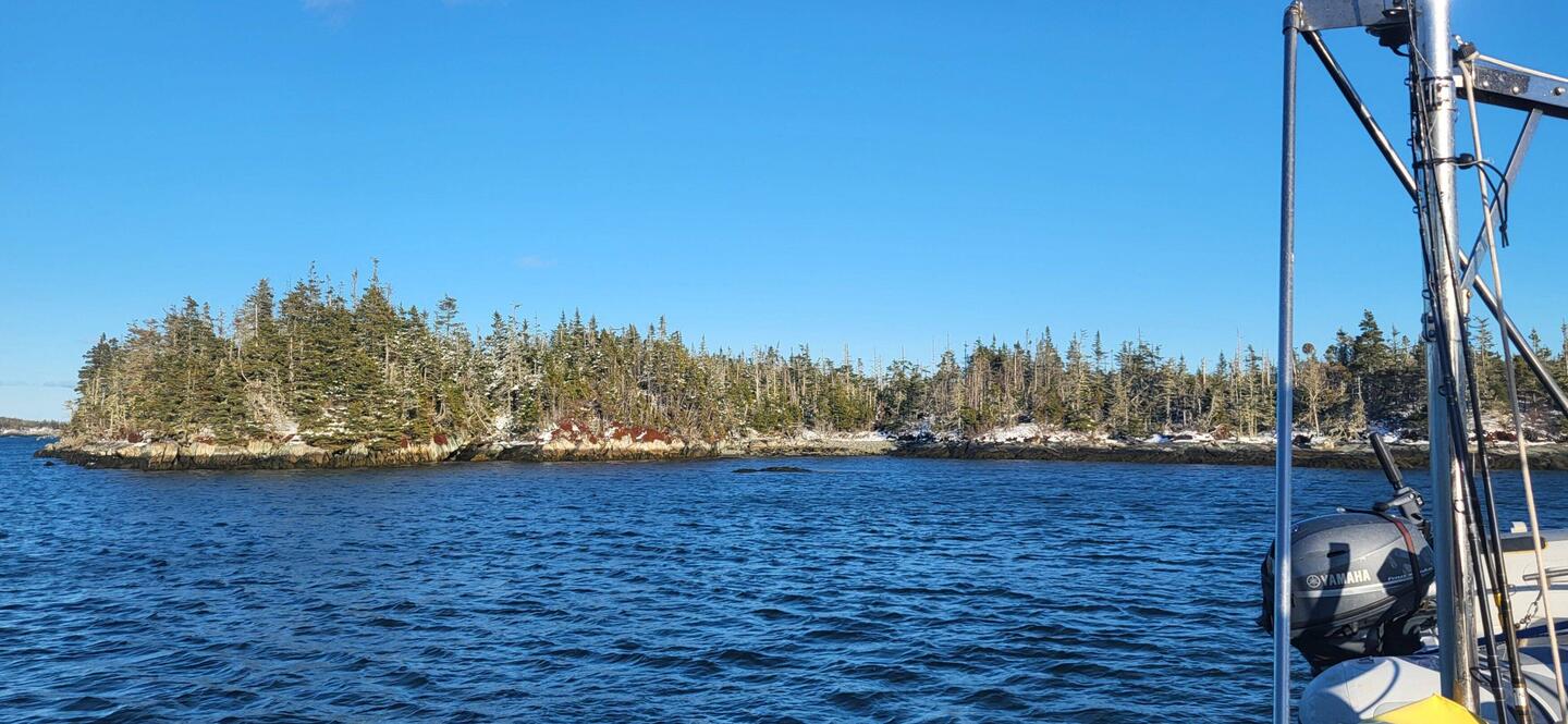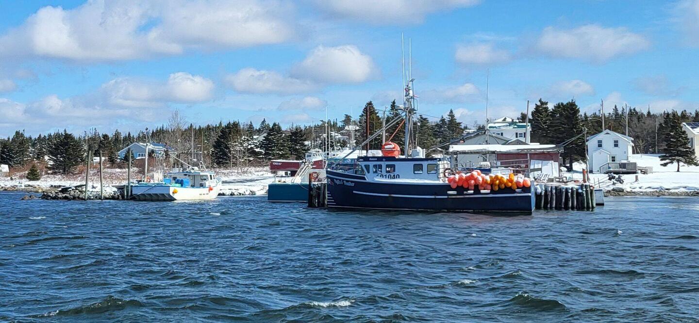...die Fischer bringen langsam ihre Lobsterkörbe zum Hafen. Es ist kalt und sonnig. Mit wenig Wind und kaum Welle geht es heute weiter.