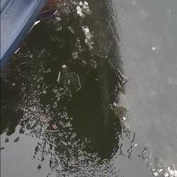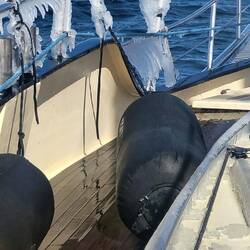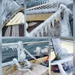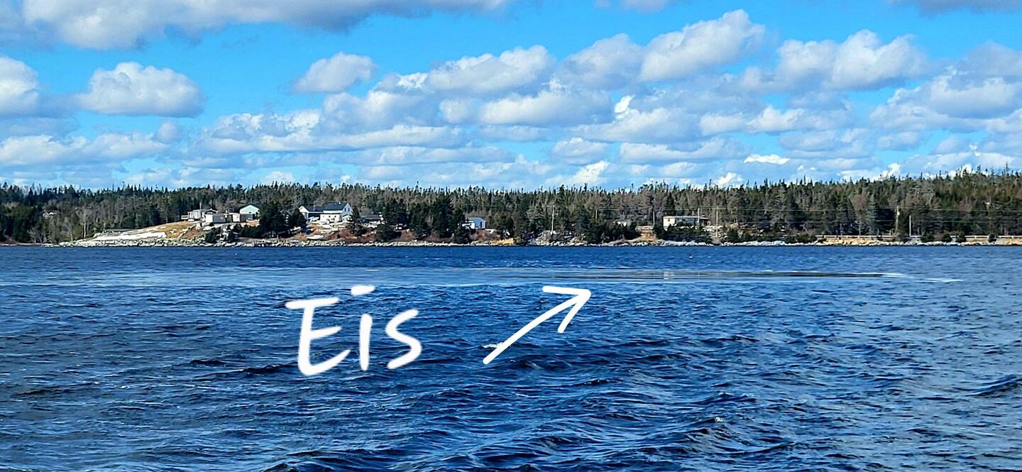 Eine letzte Eisscholle am Ankerplatz. Sicherer Ort, um Sturm morgen durchzulassen.