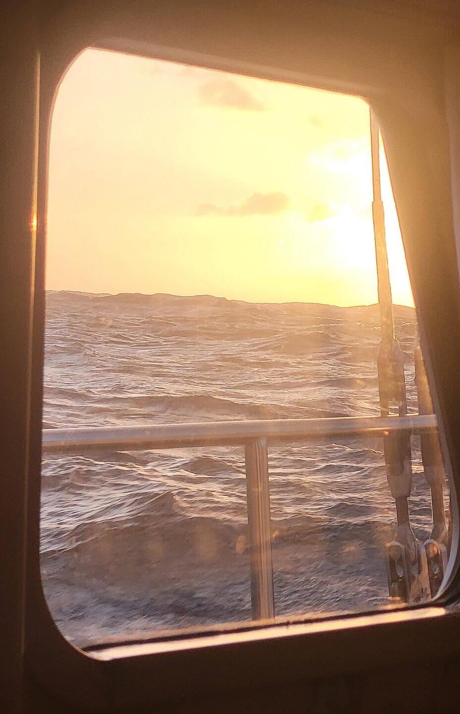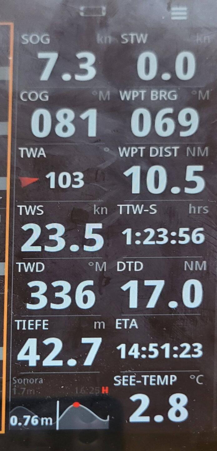 ...können wir gebrauchen. Die Etappe war zum Anfang mental ganz schön anstrengend: 35 kt Amwind in Böen - die Aegir lag ganz schön schräg. 🤣