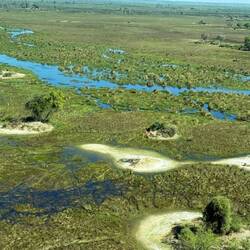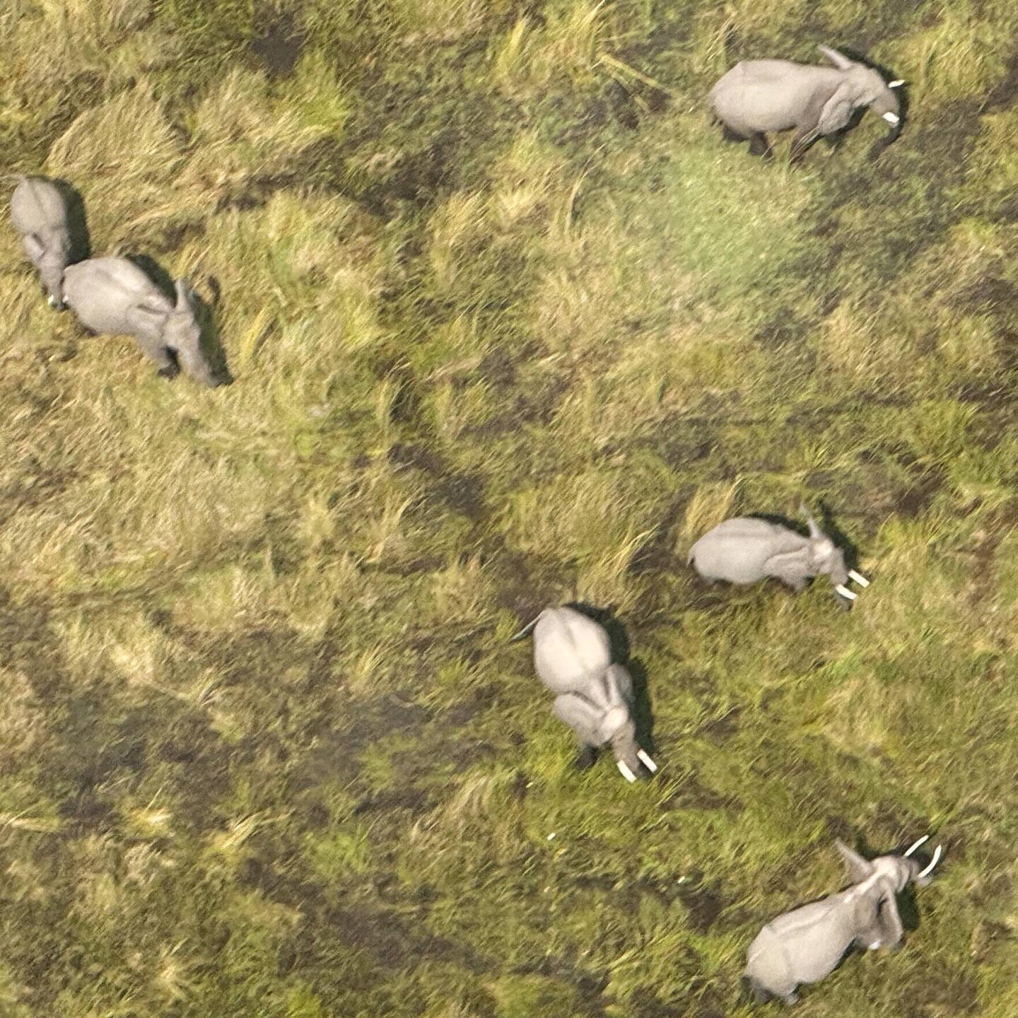 Dann folgt der schönste Heliflug, nahezu komplett über das Okavangodelta, wo wir neben der fantastischen Landschaft zahlreiche Elefanten, aber auch Hippos, Zebras, Antilopen und Giraffen sehen.