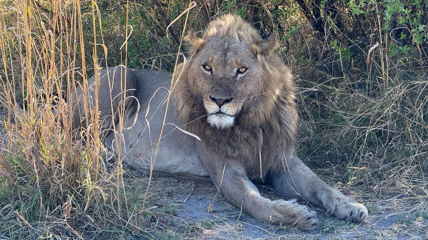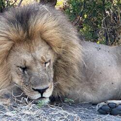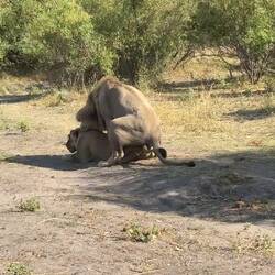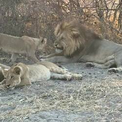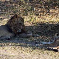 Doch treffen wir auf einen Löwen, dem Alphamännchen, den Ältesten der drei Brüder. Neben ihm liegt ein Löwenweibchen. Da steht sie auf, geht an ihm vorbei und legt sich hin. Er lässt sich nicht lang bitten und beglückt sie. Sein Gebrüll war von ebenso kurzer Dauer wie der Paarungsakt. Das Ganze wird alle 15 Minuten wiederholt und dauert zwischen 4-7 Tagen. Dann hat er genug und sie kann zu seinen Brüdern gehen. Das ganze war nicht nur für die Löwen ein Highlight.