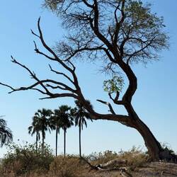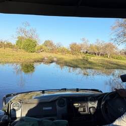 Wir sind jetzt nicht mehr im trockenen Teil, sondern mitten drin, im Okavankodelta. Die Landschaft ist hier viel feuchter. Mehr Wasser heißt mehr Pflanzen, mehr Pflanzen heisst mehr Tiere die Pflanzen fressen und dass heisst mehr Raubtiere. Unsere Erwartung ist hoch.