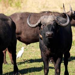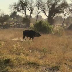 Wir sehen 2 Warzenschweine und 5 Wasserbüffel. Mit der Perspektive aus dem Kanu wirken sie viel eindrucksvoller und respektvoller als aus einem gesicherten Jeep!