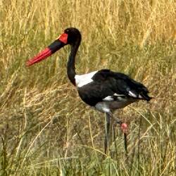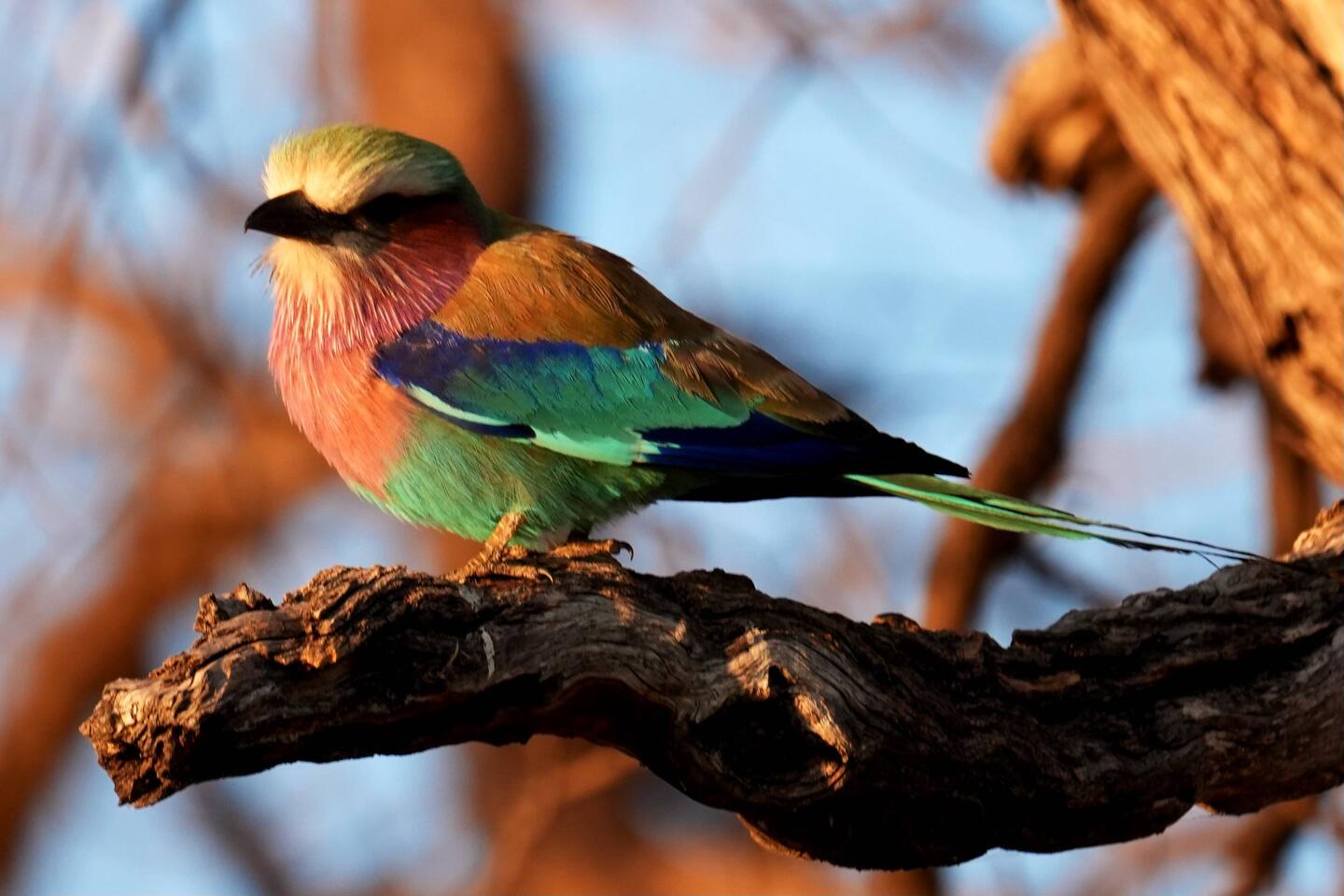 Wir sehen zahlreiche Vögel, den Lilac-Breasted Roller so schön in der Sonne wie noch nie und einen Schnabellöffler beim Schnabellöffeln.