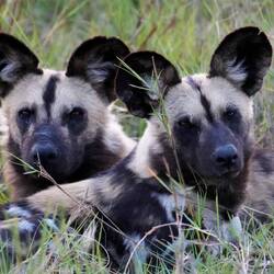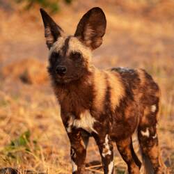 Dann ein kleines Wildhundrudel, bestehend aus einem Paar und 3 Jungen. Diese jaulen herzzerreißend, da sie gerade einen Bruder verloren haben. Sie wollen ihn wiederfinden, doch er wurde wahrscheinlich in der Nacht Opfer eines anderen Raubtieres, vermutlich einem Löwen. Das geht einem wirklich ans Herz, doch so ist die Natur!
