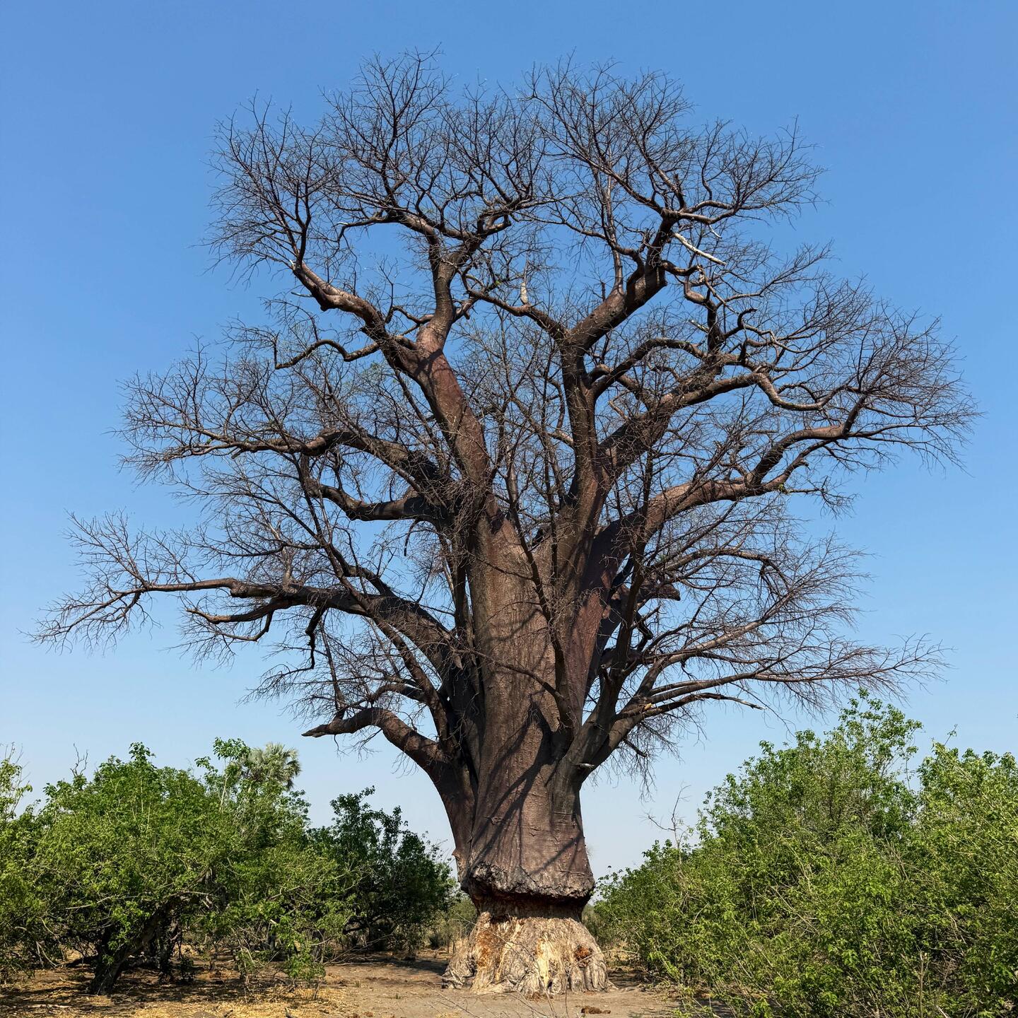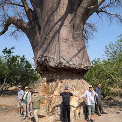 Dann sehen wir noch einen riesigen mind. 300 Jahre alten Baobab-Baum und stellen uns drunter. Er hat ca. 12 Meter Durchmesser.