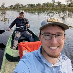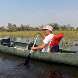 Dann kommt die Kanufahrt auf dem Selinda Fluss im Okavango-Delta in Botswana! So spannend wie es klingt wird es natürlich nicht, da man es nicht in der früh machen darf um sicher zu gehen, das die Elefanten, Büffel und sonstiges Groß-Getier nicht mehr zum Wassertrinken am Fluss ist. Nach dem gerade erst passierten Kanu-Unglück (Wütender Elefant wirft Kanus um) verständlich, aber in den Reiseprospekten wird es versprochen!