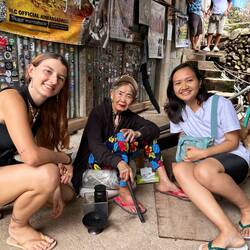 🇺🇸: okay how cool was this! Get a tattoo from the oldest tattoo artist in the world and also the stylist. She is 106 years old and still making traditional tattoos. When we arrived in the village a woman bring a basket full with needles and you could choose yours. You also get the tattoo with them. The needle is sharp thorn from a plant and is on a bamboo stick. 🎋