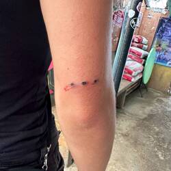 Nach bitzli warte is denn au scho los gange. I muess sege i bin ja ned schmerz empfindlich, aber es zwickt scho meh wie eh normals hahahah😂 noch dem mir mit ihre no paar cooli Pics gmacht hend bin ich direkt zu ihre Niechte und han mirs nögste Steche loh hahaha. Mis bedütet Reisender und kompass, passend ned?