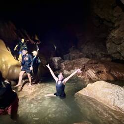 Nochdem sind mir ih eh richtig grossi höhli, wiite abstieg gsi zum chlettere echt cool haha, badet hend mir det im kalte Wasser au.