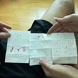 🇨🇭: was natürli au git sind komischi sache zum probiere. Mir hend denn au de Shin dezue zwunge zum mitcho. Und de arm sierch het jedes mol bi schärre stei papier verlore und het mösse zerstLue lisää