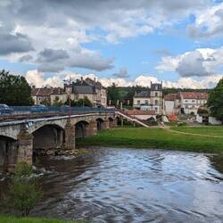 Das war heute keine Etappe für Genussradler. Lange Streckenabschnitte führten über sehr stark befahrene Straßen. Die Idee einer Fahrradspur hat die Region Lorraine leider weiterhin nicht erreicht. Vor allem die knapp zehn Kilometer zwischen Girecourt-sur-Durbion und Rambervillers waren aufgrund extremer Schwerlastdichte unangenehm. Leider gab es keine Ausweichmöglichkeiten. Und unmittelbar vor Rambervillers, als ich hoffte, den Poids lourds endlich entronnen zu sein, gab es eine Vollsperrung wegen Straßenerneuerung. Kein Durchkommen... auch nicht für Fußgänger. Die Déviation auf die Schnellstraße war für mich als Radfahrer aber tatsächlich keine Alternative. Also zurück zur nächsten Ansiedlung und über eine kleine Landstraße nach Rambervillers. Dafür gibt es von mir heute mal die "Rostige Speiche". Aber genug geschimpft. Die Etappe hat trotz dieser Fährnisse Spaß gemacht.