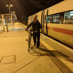 21:40 Uhr: Unser ICE fährt leider nicht ab. Jetzt empfiehlt die überforderte Zugchefin den Umstieg auf einen auf Gleis 2 einfahrenden verspäteten ICE nach Dresden. Mit dem Fahrrad über Treppen und acht Bahnsteige erscheint mir das zu riskant. Ein Fehler... hätte wohl geklappt. Stattdessen sitze ich hier fest.