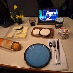 Durch die, für mich, neuen Wetterverhältnisse, genieße ich den Abend bei französischen Leckereien heute mal drinnen 😊Læs mere