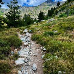 Um 8 Uhr starten wir in Richtung Galeria. Der Weg ist ebenso herausfordernd wie gestern, dazu ist es heute noch wärmer. Von Refuge geht es erst einmal 360 hm rauf, dann runter auf ca. 270 m nachLäs mer